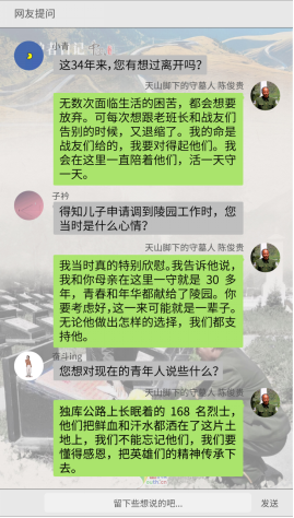 “戰(zhàn)友們的無私奉獻(xiàn)、為國捐軀是一種大愛,班長的舍生忘死是一種大愛,陳俊貴的知恩圖報也是一種大愛。陳俊貴守望的不僅僅是班長給予他的那份恩情,更是那段激情燃燒的歲月。”講述這段故事的紀(jì)實文學(xué)作品《守望天山》作者黨益民這樣寫道。