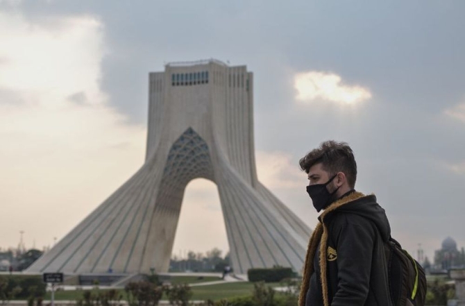 3月25日,在伊朗德黑蘭,一名戴口罩的男子從自由塔前走過。新華社發(fā)(艾哈邁德·哈拉比薩斯攝)