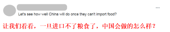 “讓我們看看,一旦進(jìn)口不了糧食了,中國會做得怎么樣?”在關(guān)于糧食出口禁令的新聞下方,有外國網(wǎng)友這樣評論道。