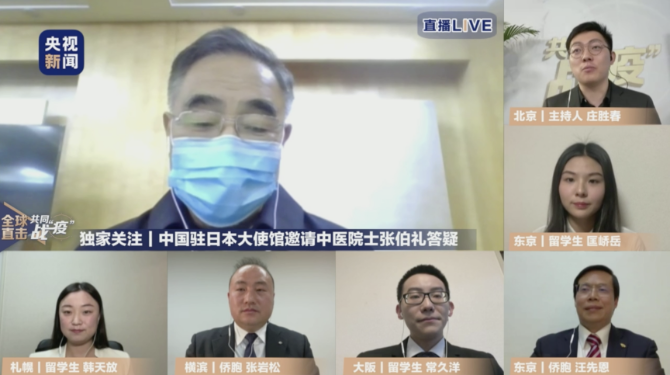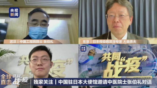 中國(guó)駐日本大使館邀請(qǐng)中醫(yī)院士張伯禮、日本傳染病資深專家大曲貴夫做客央視新聞直播間,為在日留學(xué)生和僑胞解“疫”釋疑。