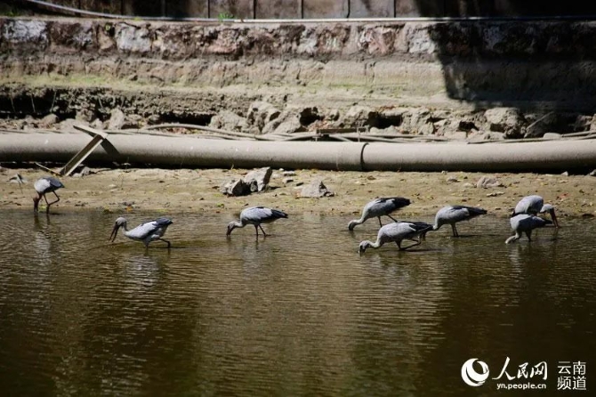 數(shù)十只鉗嘴鸛“做客”翠湖公園