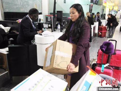 資料圖:2月14日晚,何彩霞搭乘航班回國,奔赴中國抗擊新冠肺炎疫情一線。張平 攝