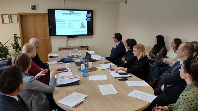 2020年3月13日,在立陶宛首都維爾紐斯,來(lái)自立陶宛衛(wèi)生部、各大醫(yī)院和研究機(jī)構(gòu)的官員和專家在立陶宛衛(wèi)生部參加視頻會(huì)議。當(dāng)日,中國(guó)同中東歐17國(guó)舉行新冠肺炎疫情防控專家視頻會(huì)議,分享和交流疫情防控經(jīng)驗(yàn)及信息。(新華社發(fā),中國(guó)駐立陶宛使館供圖)