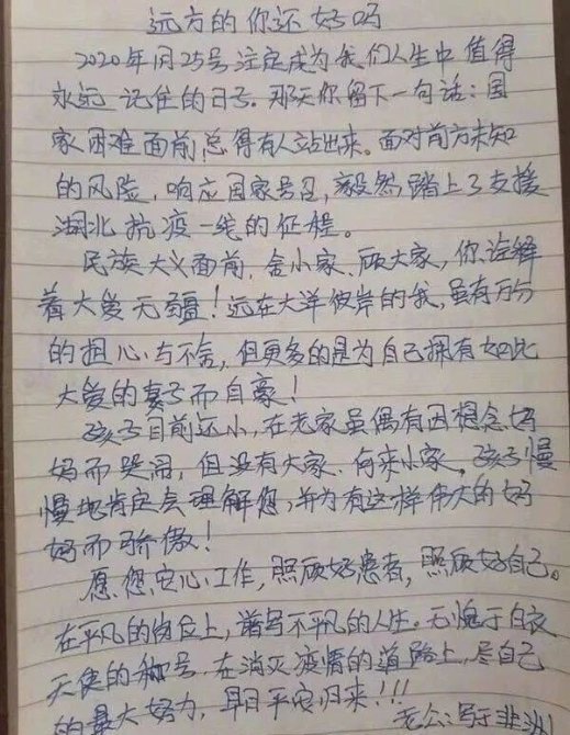 車隊出發(fā)去機場,群眾自發(fā)送行的隊伍讓人動容,馬路兩旁、居民樓上有無數(shù)歡送橫幅: “春風十里,只為送你”“謝謝您為我們負重前行,謝謝您曾為黃岡拼過命”“我未謀您面,但是記得您”……黃岡市民拿出了最高的禮節(jié)來歡送我們,人群中還有咿呀學語的孩童,由父親舉到頭頂,對我們說: “齊魯大愛,銘記終生,感謝山東,感恩有你。 ”還有多才多藝的小學生畫給我們的畫,告訴我們,要以我們?yōu)榘駱?,長大后也要做我們這樣的人,把正能量帶給黃岡少年。 我覺得兩個月的困難、艱苦,意義非凡。