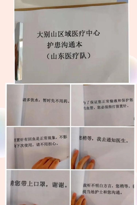 每當語言不通時,張靜靜和同事便拿出自制的《護患溝通本》,請患者通過文字理解