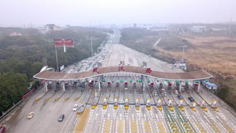 這是1月23日拍攝的武漢西高速收費(fèi)站。新華社記者熊琦攝