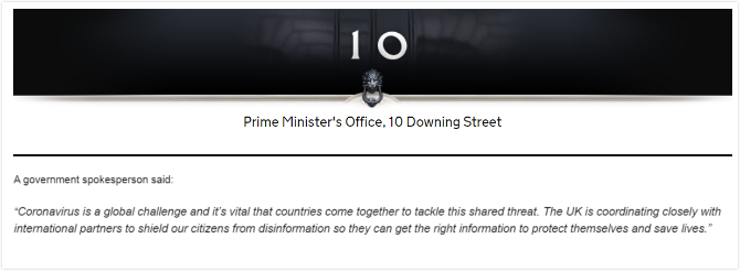 英國政府發(fā)言人的回復(fù),沒有直接指明該報(bào)告,卻非常巧妙地表示,英國將與“其他國家”緊密合作避免“虛假信息”,保護(hù)生命才是當(dāng)務(wù)之急。