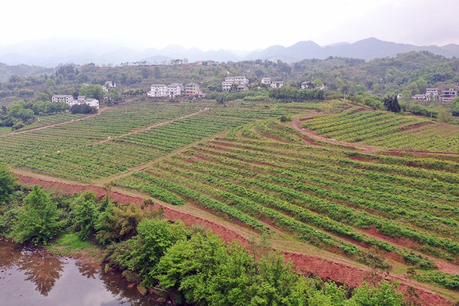 發(fā)展現(xiàn)代農(nóng)業(yè),就必須讓農(nóng)田地塊小并大、陡變平,便于機(jī)械化耕種,因此渝北區(qū)大力開展土地宜機(jī)化整治。木耳鎮(zhèn)金剛村74歲的村民尹興明一家有8畝地,他指著村里一片片平田和梯田說:“我的土地原本在小山坡上,田坎窄,鋤挖肩挑累死人不說,種地也賺不了幾個錢?,F(xiàn)在整治后土地平了、成片了,拖拉機(jī)都能開進(jìn)去,全都種上了果苗,果苗下又套種蔬菜。我在果園務(wù)工,一天有100元,比以前輕松得多!”