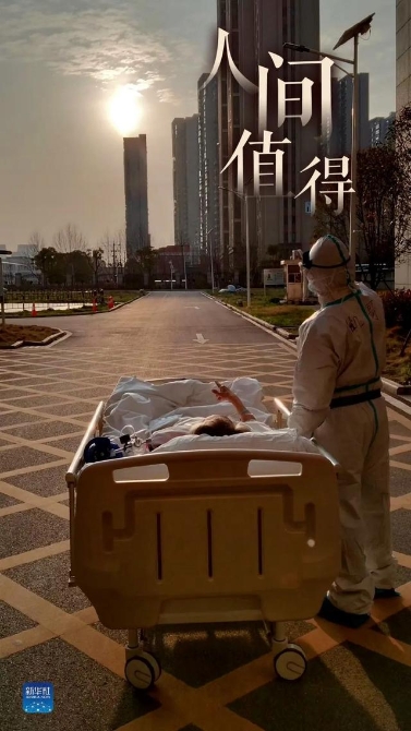 2020年3月初,上海援鄂醫(yī)療隊(duì)員劉凱在送病人王欣做CT返回途中,把病床停在醫(yī)院大樓前,讓當(dāng)時(shí)病情嚴(yán)重的他欣賞了一次久違的日落。這一瞬間隨后走紅網(wǎng)絡(luò)。