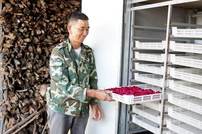 據(jù)峨山縣云翔玫瑰專(zhuān)業(yè)產(chǎn)銷(xiāo)合作社負(fù)責(zé)人鄭三軍介紹,2013年底,自己與方順旺等十多位種植戶在雨龍村培育金邊玫瑰,2014年初收獲了第一批花苞。從自然晾曬到使用烤箱烘干,鄭三軍帶領(lǐng)種植戶進(jìn)行了反復(fù)試驗(yàn),前往多地考察?,F(xiàn)在,鄭三軍不僅能準(zhǔn)確辨識(shí)植株健康狀況、烘烤技術(shù)疏漏,教會(huì)種植戶如何改進(jìn),還在品種引進(jìn)、物流等方面有收獲。不少村民看到跟著鄭三軍種植食用玫瑰這一“美麗事業(yè)”前景廣闊,隨后轉(zhuǎn)變農(nóng)業(yè)產(chǎn)業(yè)發(fā)展方式,種植起了玫瑰。2017年7月,鄭三軍與方順旺等60多人共同成立了峨山縣云翔玫瑰專(zhuān)業(yè)產(chǎn)銷(xiāo)合作社,通過(guò)合作社推動(dòng)玫瑰花產(chǎn)業(yè)規(guī)模化、專(zhuān)業(yè)化發(fā)展。