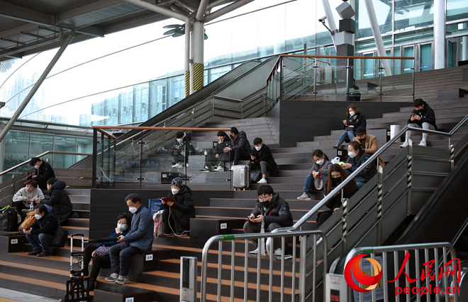 韓國首爾火車站,市民們紛紛戴上了口罩 裴埈基攝
