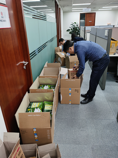 工行首爾分行員工籌備防疫物資的捐獻工作