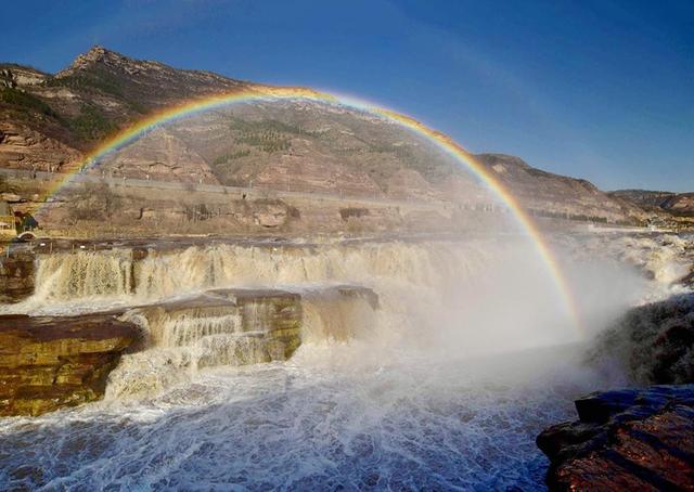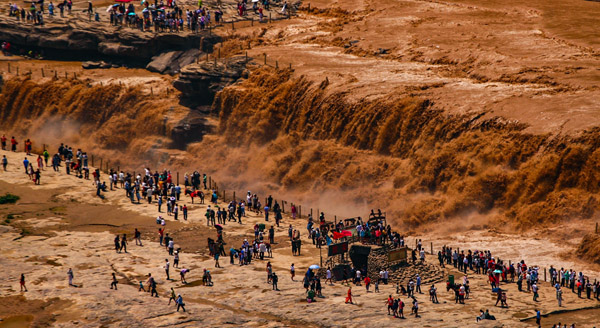 吉縣是黃色的。“源出昆侖衍大流,玉關九轉一壺收。”滔滔黃河水在流經吉縣龍王山附近時,由300米乍縮為50米,飛流直下,猛跌深槽,如壺注水,繪就了黃河壺口瀑布的壯美奇觀。