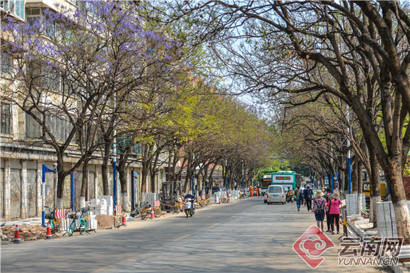 據(jù)了解,此次改造提升將會在整個街面上會更加突出藍花楹元素,包括人行道上的地磚、道路兩側(cè)圍墻、主題廣場的景觀等內(nèi)容都將進行相應(yīng)設(shè)置,搭配藍花楹主題圖案。此次道路提升改造將于4月底前完成。(云南網(wǎng))