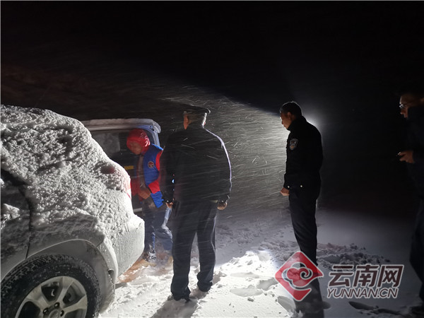 “喂,大海派出所嗎?我白天來(lái)大海草山玩,現(xiàn)在下大雪被困在里面了,請(qǐng)你們來(lái)救我!”21點(diǎn)50分,大海鄉(xiāng)派出所接到游客朱某的報(bào)警電話。警情就是命令,大海派出所所長(zhǎng)尚加英立即帶領(lǐng)民警不顧漫天飛雪趕往事發(fā)地點(diǎn)救援。由于被困游客所處區(qū)域海拔3500米,夜間氣溫接近零下5度,并伴隨著暴風(fēng)雪,游客的生命安全受到威脅。隨著海拔越來(lái)越高,風(fēng)雪越來(lái)越大,天黑路滑,積雪厚重,給救援工作帶來(lái)了極大的困難,派出所的救援警車剛出門500米就被困在路上無(wú)法前行。面對(duì)群眾安危,為及時(shí)趕往救援,大海派出所民警立即與大海鄉(xiāng)政府取得聯(lián)系,并調(diào)來(lái)了四驅(qū)車火速趕往現(xiàn)場(chǎng)。經(jīng)過(guò)1個(gè)多小時(shí)的緩慢行駛,23時(shí)許,終于在草山賓館附近找到了被困游客,當(dāng)時(shí)游客的臉被凍得通紅,渾身哆嗦,話都說(shuō)不出。民警立即為朱某送上隨車帶來(lái)的熱水,并將朱某帶上車返回。23時(shí)30分,大海派出所民警將朱某帶到了鄉(xiāng)鎮(zhèn)所在地,為朱某找到了旅店住宿。