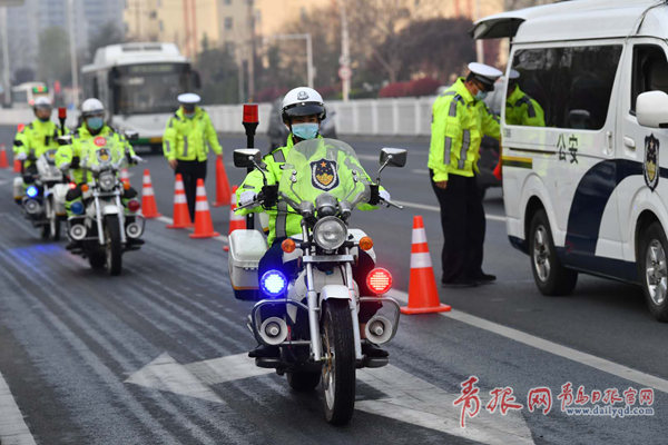 交警在青島二中周邊疏導(dǎo)交通。攝影 周光輝