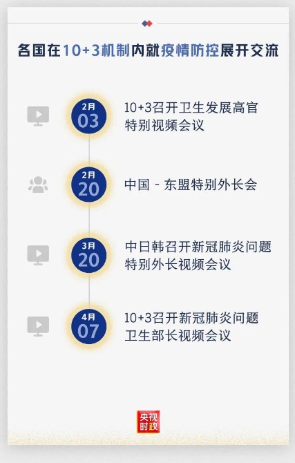 在這次會(huì)議召開(kāi)之前,10+3機(jī)制內(nèi)的危機(jī)響應(yīng)機(jī)制已經(jīng)啟動(dòng),各國(guó)在10+3機(jī)制內(nèi)就疫情防控展開(kāi)了多次交流。