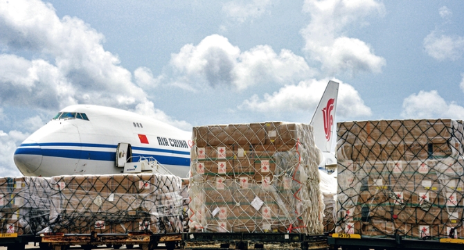 2020年4月6日,中國援助18個(gè)非洲國家的抗疫物資運(yùn)抵加納。除加納外,這批物資還將在這里中轉(zhuǎn)運(yùn)往其他17個(gè)國家,以幫助當(dāng)?shù)乜箵粢咔椤?新華社記者 許正/攝