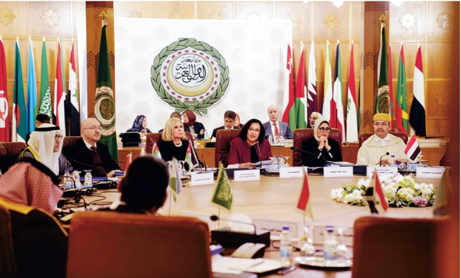2020年2月27日,阿拉伯國家衛(wèi)生部長理事會第53次會議在位于埃及首都開羅的阿拉伯國家聯(lián)盟(阿盟)總部召開。會后發(fā)表的聲明說,阿拉伯國家衛(wèi)生部長高度贊賞中國在防止新冠肺炎疫情擴(kuò)散方面所做的努力,相信中國有能力完全控制疫情,并推動全球抗擊疫情國際合作。圖為在埃及首都開羅拍攝的會議現(xiàn)場。 新華社發(fā)