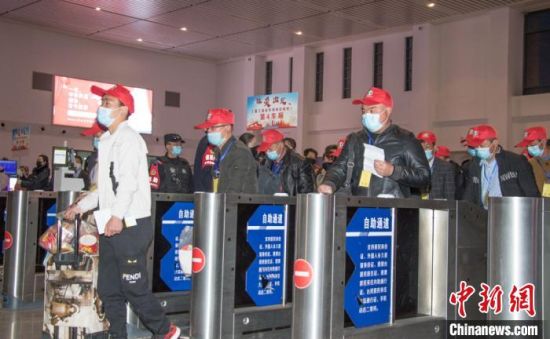 2月21日,定西市農(nóng)民工過檢票閘口赴東南部地區(qū)務(wù)工。(資料圖) 陳昕 攝