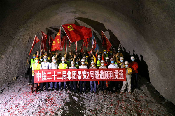 據(jù)了解,隧道通過超大斷面后,變?yōu)閱尉€隧道,開挖斷面縮小、穿越淺埋段,施工組織困難,2016年7月進場以來,施工人員在狹小的空間里艱難向前掘進,歷時3年零8個月的建設(shè)順利實現(xiàn)貫通。