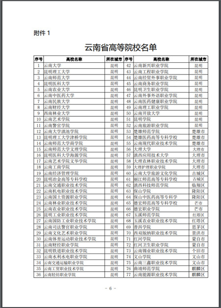 1.云南省高等院校名單