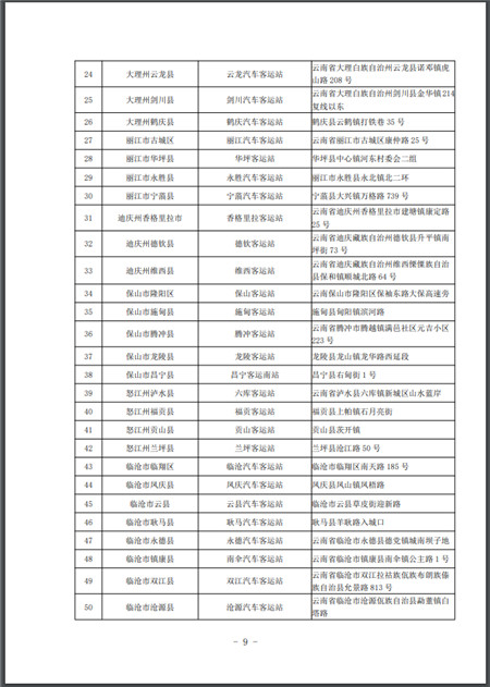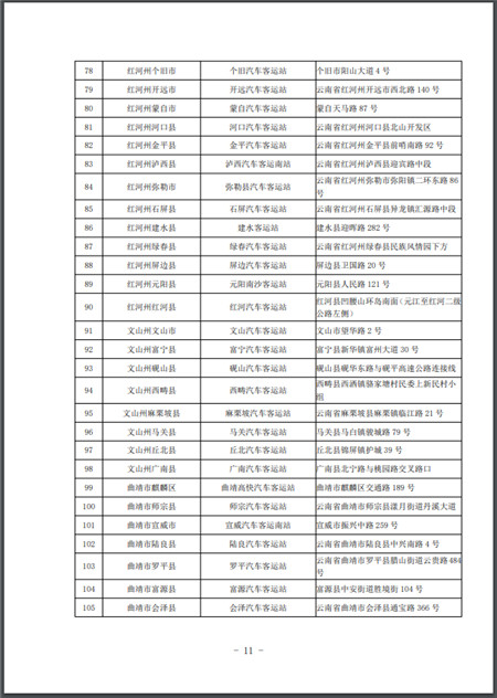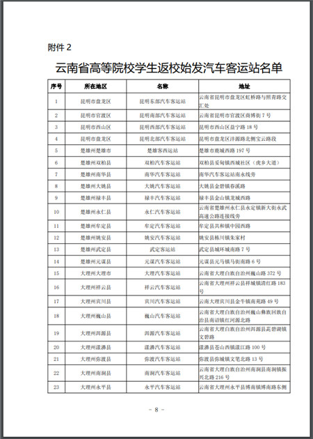 2.云南省高等院校學(xué)生返校始發(fā)汽車客運(yùn)站名單