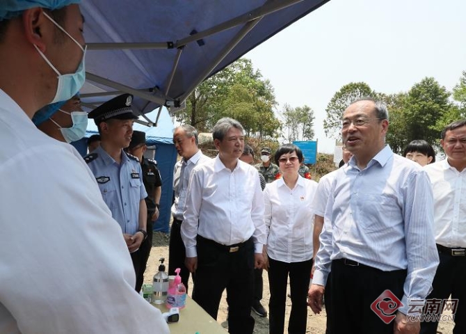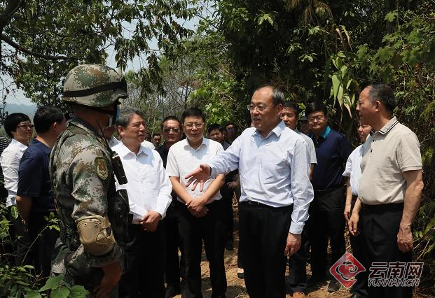 景洪市邊境線長(zhǎng)110多公里,抵邊居住人口較多,非法出入境管控難度大,境外疫情輸入風(fēng)險(xiǎn)高。阮成發(fā)一行沿景洪邊境巡邏便道,翻山越嶺深入勐龍鎮(zhèn)勐宋村邊境聯(lián)合防控點(diǎn),實(shí)地察看通道便道封控、抵邊村寨防控工作;了解24小時(shí)巡邏、依法嚴(yán)厲打擊非法偷越國(邊)境活動(dòng)等防控措施落實(shí)情況;走進(jìn)臨時(shí)帳篷檢查隔離設(shè)施、應(yīng)急物資儲(chǔ)備;看望慰問駐守邊境一線、參與疫情防控的部隊(duì)官兵和聯(lián)合執(zhí)勤干部群眾,勉勵(lì)他們繼續(xù)在邊境線上筑牢一個(gè)個(gè)堡壘、守住一道道防線,堅(jiān)決管住邊境,堅(jiān)決堵住境外疫情輸入。