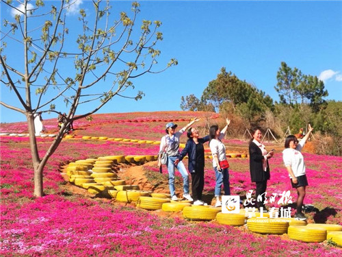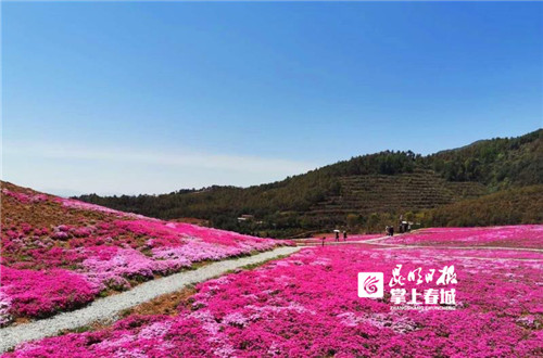 昆明信息港訊(昆明日?qǐng)?bào) 記者冉光雯 通訊員柏斌)四月芳菲醉,人間重春時(shí),山野欣然,大地芳香,處處繁花盛開。在云南昭通昭陽區(qū)蘇家院鎮(zhèn)白虎山花卉盆景主題莊園中,激情綻放的千畝芝櫻花海燦如云霞,吸引眾多游客前來踏春賞花。