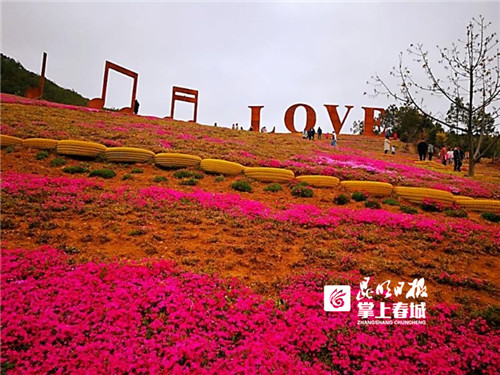 進(jìn)入莊園,只見遠(yuǎn)處漫山滿坡的芝櫻花粉若凝脂,像一張與天際無縫銜接的大地毯,從山頂傾瀉而下。沿著黃色、藍(lán)色的廢舊車輪胎筑就的園路小路漫步花海,一朵朵、一簇簇的芝櫻花粉的嬌俏、紅的明艷、白的溫潤。一陣微風(fēng)吹來,花浪翻滾、搖曳多姿。如夢(mèng)似幻的浪漫花海與陽光藍(lán)天白云映襯,與周邊翠綠茂林相伴,像一幅美麗的生態(tài)畫卷。前來拍照游玩的游客說:“在家里宅的時(shí)間長了,趁著好天氣,帶著小孩出來走,沒想到這地方環(huán)境好、景觀美,在家門口就能欣賞到日本北海道芝櫻花海景觀?!?/p>