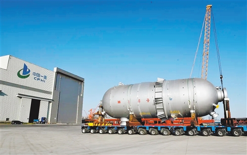 近日,中國一重大連核電石化公司承制的浙江逸盛鍛焊加氫反應器套容器設備順利完成制造任務。 (本報記者 蘇大鵬供圖)