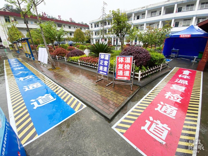 老縣鎮(zhèn)中心小學(xué)是4月20日開學(xué)復(fù)課的,采取錯時入校離校、錯峰就餐安排,每天早午晚定時對師生開展體溫檢測。