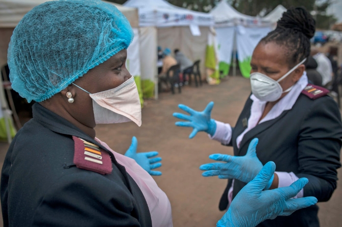 4月8日,在南非約翰內(nèi)斯堡,醫(yī)護(hù)人員在新冠病毒檢測站工作。隨著疫情加劇,非洲多國加大對新冠疫情的防控力度。受新冠疫情影響,南非已經(jīng)在全國范圍內(nèi)實(shí)施“封城”措施,并在全國范圍內(nèi)投入了多個簡易移動檢測站,加大檢測力度。新華社發(fā)(希拉茲攝)