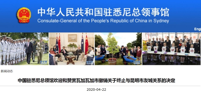 4月22日,記者從中華人民共和國(guó)駐悉尼總領(lǐng)事館官網(wǎng)獲悉,新南威爾士州瓦加瓦加市議會(huì)通過(guò)決議,決定撤銷(xiāo)此前終止瓦加瓦加市與中國(guó)云南省昆明市友好城市關(guān)系的錯(cuò)誤決定。中國(guó)駐悉尼總領(lǐng)館對(duì)此表示歡迎和贊賞。
