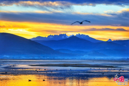 碧沽天池位于迪慶香格里拉,清澈澄明的湖水,仿佛就是其周邊那個(gè)多姿多彩的花草樹木的世界所捧出的純潔的心魂。天池周圍不僅有大片的原始森林,有綠茵的牧場(chǎng),更有艷麗的杜鵑花海。(佚名)