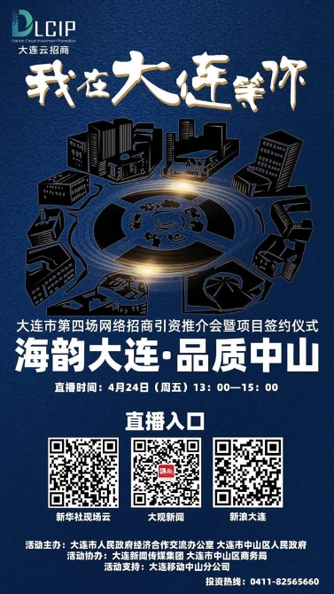 4月24日13:00—15:00,2020年大連市第四場網(wǎng)絡(luò)招商引資推介會暨項目簽約儀式——海韻大連?品質(zhì)中山將華麗登場。