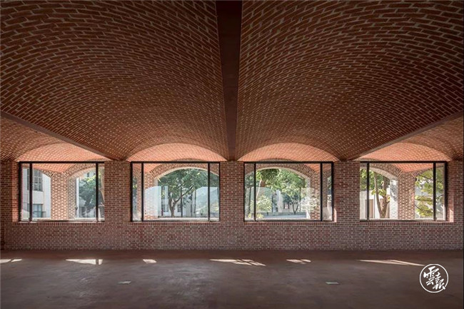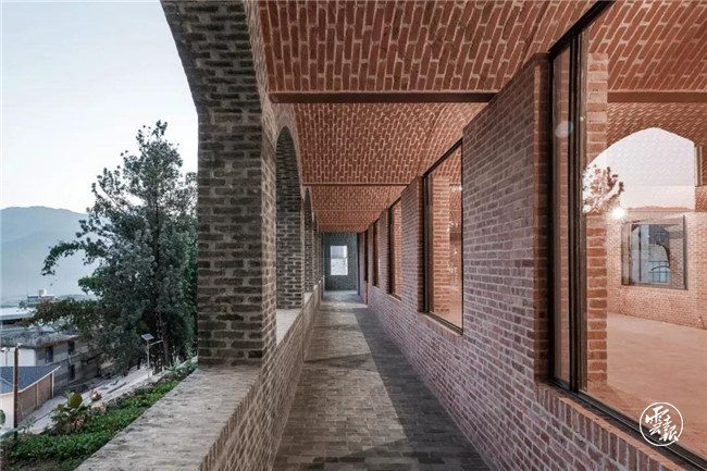 建筑外墻采用了磚和混凝土兩種材料,與環(huán)境形成既有聯(lián)系又有變化的關(guān)系。