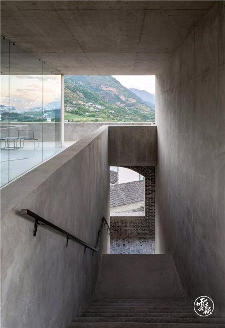最頂層的建筑由磚砌體變?yōu)榛炷量蚣苄问?,大面積的開(kāi)窗設(shè)計(jì)以獲得最大的開(kāi)放性,滿(mǎn)足人們俯瞰峽谷景色的需要。
