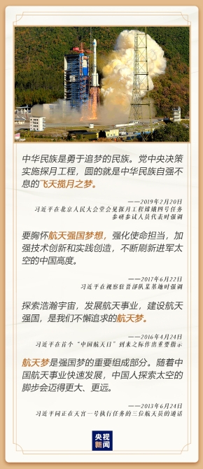 2020年新年賀詞中,習近平總書記特別提到2019年中國航天事業(yè)取得的巨大成就:嫦娥四號在人類歷史上第一次登陸月球背面,長征五號遙三運載火箭成功發(fā)射,北斗導航全球組網(wǎng)進入沖刺期。這些成就凝結(jié)著新時代奮斗者的心血和汗水,彰顯了不同凡響的中國風采、中國力量。