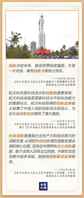 “星空浩瀚無比,探索永無止境,只有不斷創(chuàng)新,中華民族才能更好走向未來?!?/p>