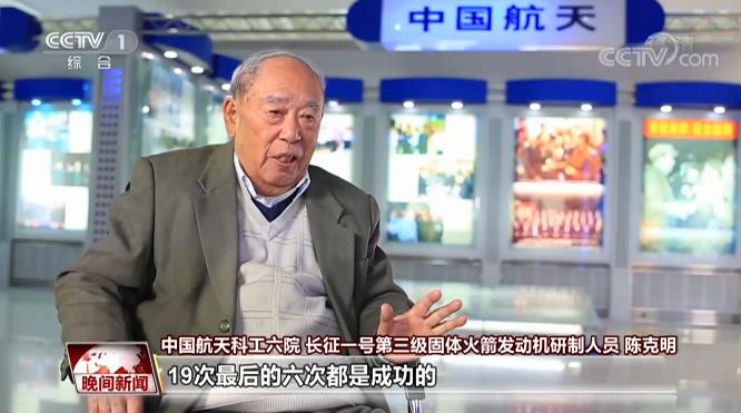 中國(guó)航天科工六院長(zhǎng)征一號(hào)第三級(jí)固體火箭發(fā)動(dòng)機(jī)研制人員 陳克明:19次最后的六次都是成功的,連續(xù)六次沒有失敗。