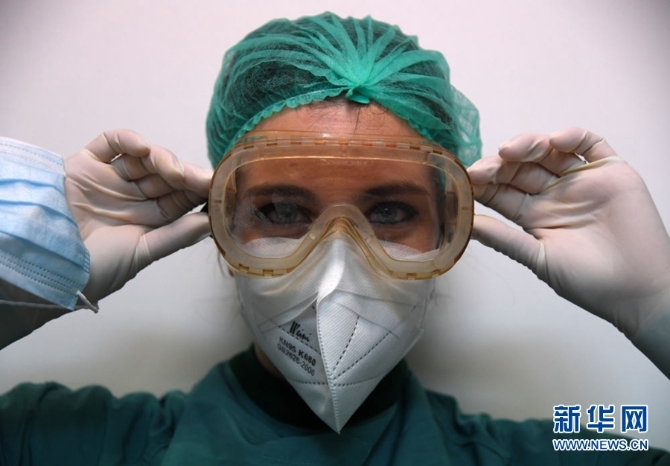 4月12日,在意大利首都羅馬,圣斯皮里托醫(yī)院的護(hù)士在進(jìn)入新冠肺炎病區(qū)前穿戴防護(hù)設(shè)備。新華社發(fā)(阿爾貝托·林格利亞攝)
