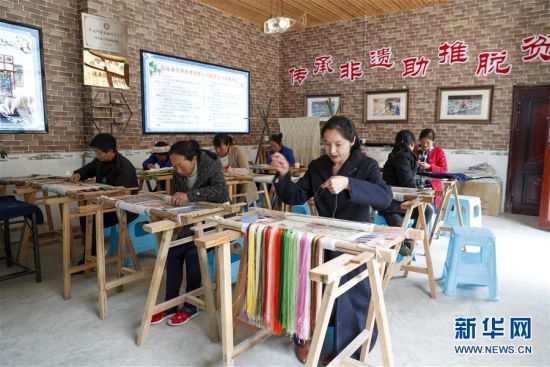 近年來(lái),重慶市巫溪縣天元鄉(xiāng)針對(duì)留守婦女、貧困及殘疾人群開展刺繡培訓(xùn),設(shè)立繡娘扶貧車間,開發(fā)出掛畫繡品、抱枕繡品等系列文創(chuàng)產(chǎn)品,幫助當(dāng)?shù)卮迕窬蜆I(yè)增收。 新華社發(fā)(黃偉攝)