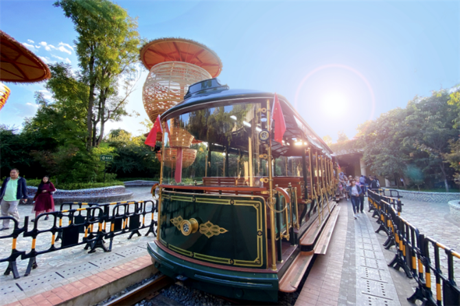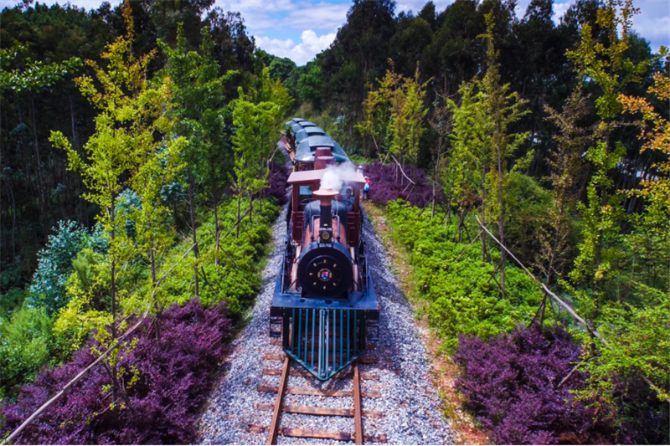 鳳龍灣小鎮(zhèn)規(guī)劃建成全長22公里的準(zhǔn)軌觀光火車鐵路,首期已建成8公里,途經(jīng)梧桐、銀杏、櫻花、紫藤、梨花、桃花構(gòu)成的“隧道”。到這里旅游,乘坐觀光火車覽湖光山色已成為游客的必選項目,而鐵軌兩旁迎風(fēng)開放的山花更增加了浪漫的氛圍。
