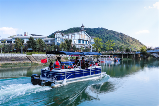此外,鳳龍灣小鎮(zhèn)坐擁3295畝水域面積,周邊植被覆蓋率高達83%,沿著鳳龍灣的水域,游船穿梭于16公里的綿延水路與原始森林之間,沿途田園牧歌的淳淳民風(fēng)與大自然鬼斧神工雕琢出的石窟瀑布相映成趣,水草豐沛的兩岸,一群群白鷺翩翩而至,劃過蔚藍深邃的湖面,讓游人享受天然氧吧的同時,沉醉于“一行白鷺上青天”的詩意畫卷中。