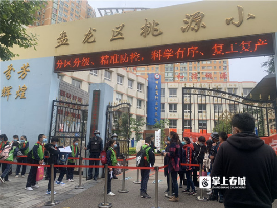 早上7:40,桃源小學(xué)的學(xué)生已經(jīng)都戴好口罩,在校門(mén)外排起了長(zhǎng)長(zhǎng)的隊(duì)伍。進(jìn)入學(xué)校前,他們需要完成最重要的步驟——測(cè)溫。面對(duì)久違的校園,許多同學(xué)在接受采訪時(shí)都表示,終于開(kāi)學(xué)了,心情太激動(dòng)昨晚都沒(méi)睡好!