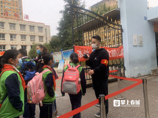 “學(xué)校安排了晨檢、午檢,分時(shí)段通過(guò)體溫檢測(cè)、觀察、詢(xún)問(wèn)等方式了解學(xué)生的狀態(tài),同時(shí)教室里都保證開(kāi)窗通風(fēng),隨時(shí)佩戴口罩?!蔽涑尚W(xué)后勤副校長(zhǎng)徐屹介紹。