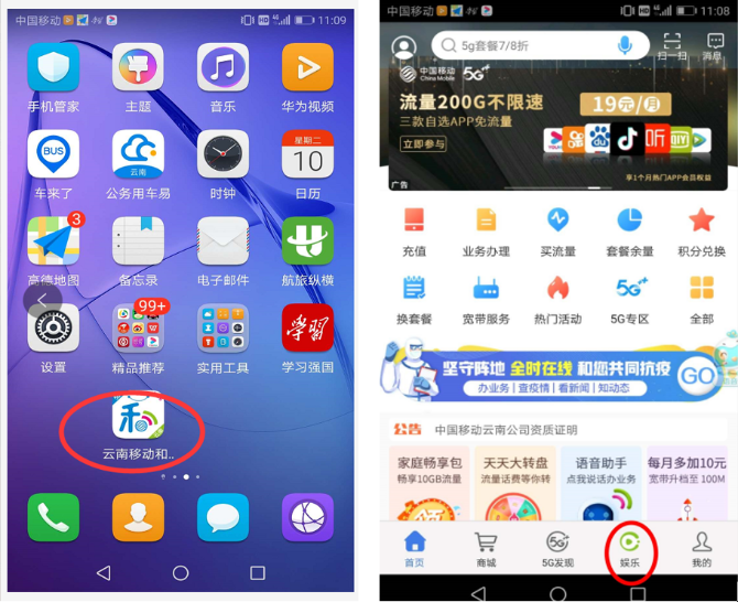 步驟一:打開云南移動和生活app(若沒安裝請到應(yīng)用市場(商店)進(jìn)行下載,在應(yīng)用市場(商店)輸入“云南移動和生活”—下載)。