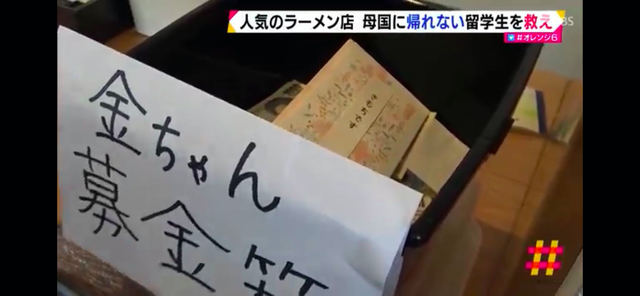 拉面店為胡金丹設(shè)立的募捐箱。靜岡市電視臺(tái)視頻截圖