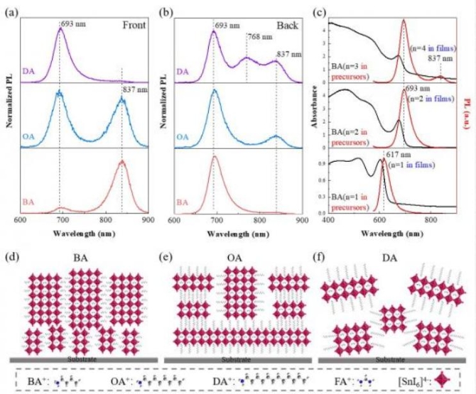 4月27日,記者從電子科技大學獲悉,該??蒲袌F隊通過應用不同烷基鏈長的間隔陽離子設計了綠色的新型二維錫基鈣鈦礦光伏材料,并揭示了烷基鏈長在薄膜晶體生長與穩(wěn)定性上的重要作用,為實現(xiàn)綠色、穩(wěn)定的鈣鈦礦太陽能電池提供了新思路,相關成果已于日前發(fā)表在國際著名期刊《美國化學學會能源快報》。